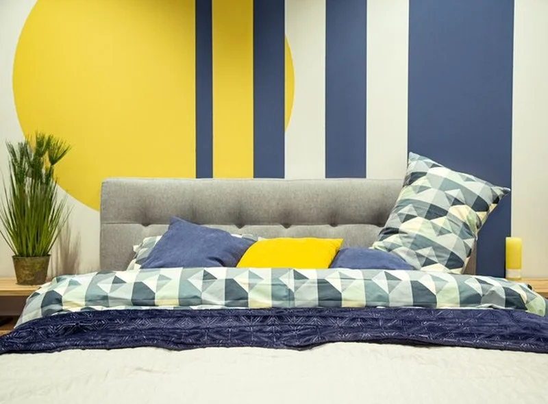 - Jednu akcentní stěnu za postelí natřete v tlumeném odstínu — tlumená modrá, šedozelená nebo teplá terakota fungují výborně.